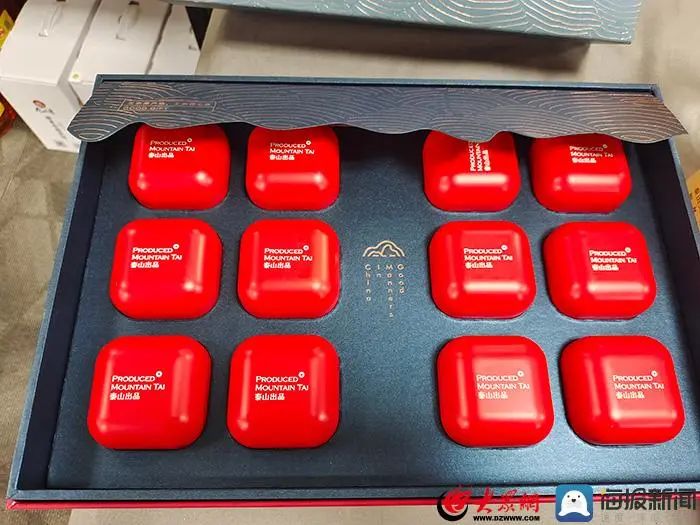 “泰山出品”包裝設計的茶葉禮盒(記者 田陽 攝)