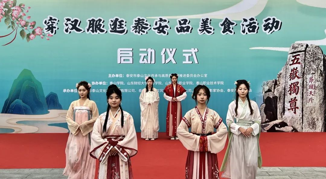 11月16日,由泰安市泰山文化傳承與高質(zhì)量發(fā)展推進(jìn)委員會(huì)辦公室主辦,泰山文旅集團(tuán)、泰安市龍泉漢風(fēng)文化傳媒有限公司、泰安市攝影家協(xié)會(huì)、泰安市漢服協(xié)會(huì)承辦,泰山學(xué)院、山東財(cái)經(jīng)大學(xué)東方學(xué)院、山東服裝職業(yè)學(xué)院、泰山職業(yè)技術(shù)學(xué)院協(xié)辦的“穿著漢服逛泰安品美食”活動(dòng)在紅門(mén)廣場(chǎng)成功舉辦,200余名駐泰高校的漢服愛(ài)好者齊聚一堂。