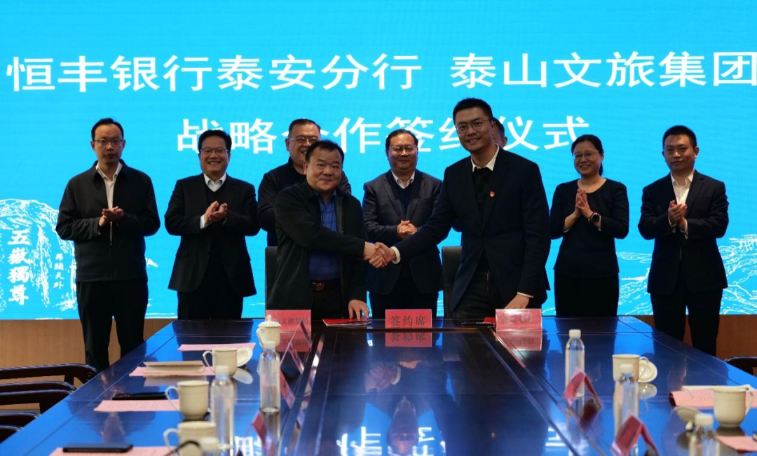 11月20日,泰山文旅集團與恒豐銀行舉行戰(zhàn)略合作協(xié)議簽約儀式。市人民政府副秘書長侯召席,景區(qū)黨工委委員、管委會副主任李峰,泰山文旅集團黨委書記、董事長時貞強,恒豐銀行濟南分行黨委書記、行長劉鑫,恒豐銀行泰安分行黨總支書記、行長閆一鳴等出席本次簽約儀式。