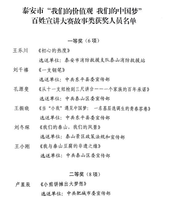 近日,中共泰安市委宣傳部等多部門聯(lián)合主辦的泰安市“我們的價值觀我們的中國夢”百姓宣講大賽結果公布,泰山文旅集團子公司泰山出品公司職工劉冬琛,憑借題為《我們的泰山,我們的風景》的宣講,榮獲故事類一等獎。